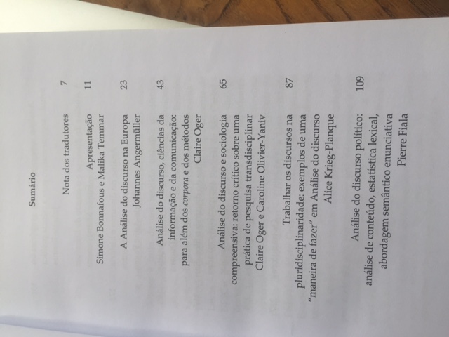 Publication brésilienne du livre "Analyse du discours et sciences humaines et sociales" dirigé par Malika Temmar et Simone Bonnafous.